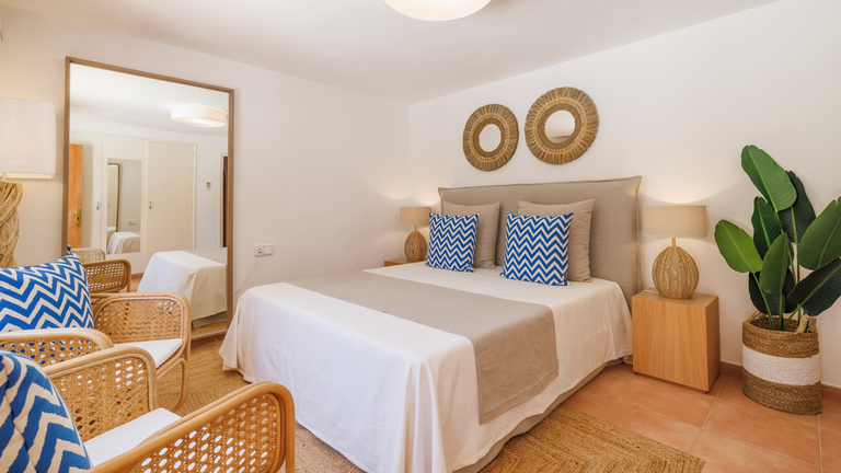 Su ubicación es perfecta, la zona de Cala Vedella es una de las zonas más tranquilas de la isla de Ibiza. Se encuentra cerca de la Playa de Cala Vedella donde hay algunos de los restaurantes más auténticos de Ibiza como los restaurantes Maria Luisa, Ca Na Sofía, entre otros. También se encuentra cerca de una zona donde hay supermercado y souvenirs.